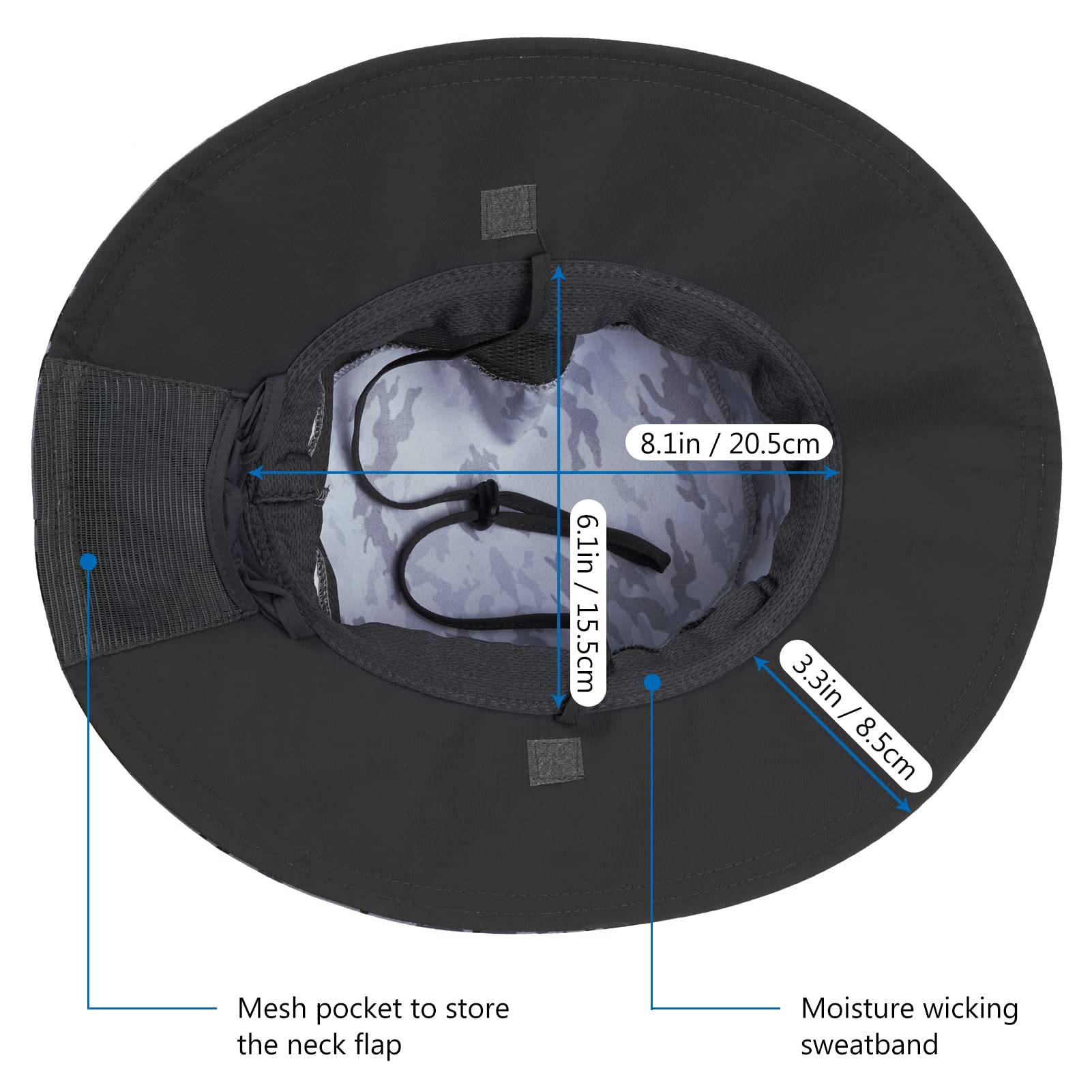 BASSDASH UPF 50+ Sun Fishing Hat Water Resistant with Detachable Neck Flap