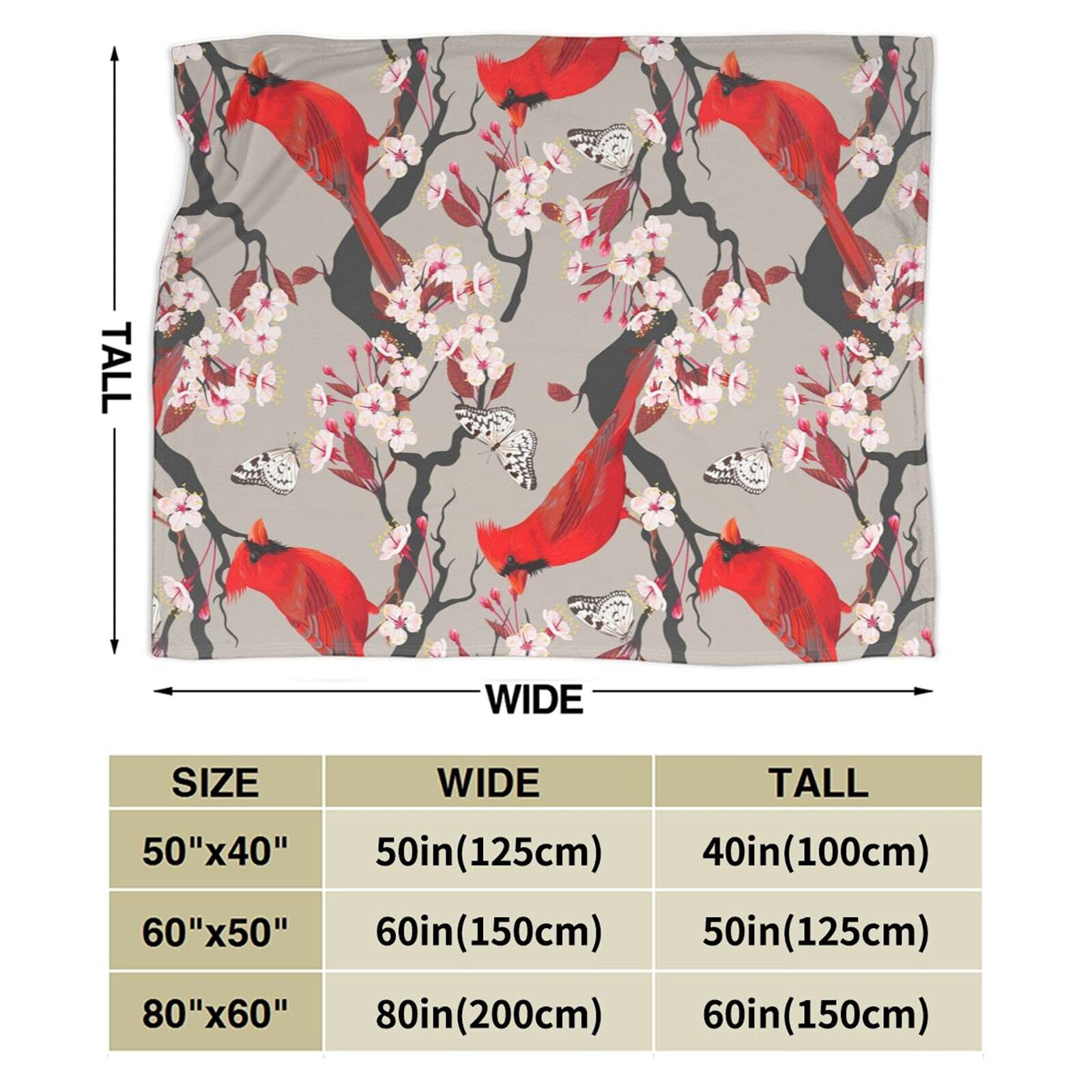 LodiSFOA Lightweight Microfiber Plush Throw Blanket Christmas Cardinal Decor for Couch Bed Sofa Travel All Seasons(Cardinals Birds Cherry Flowers, 40"×50")