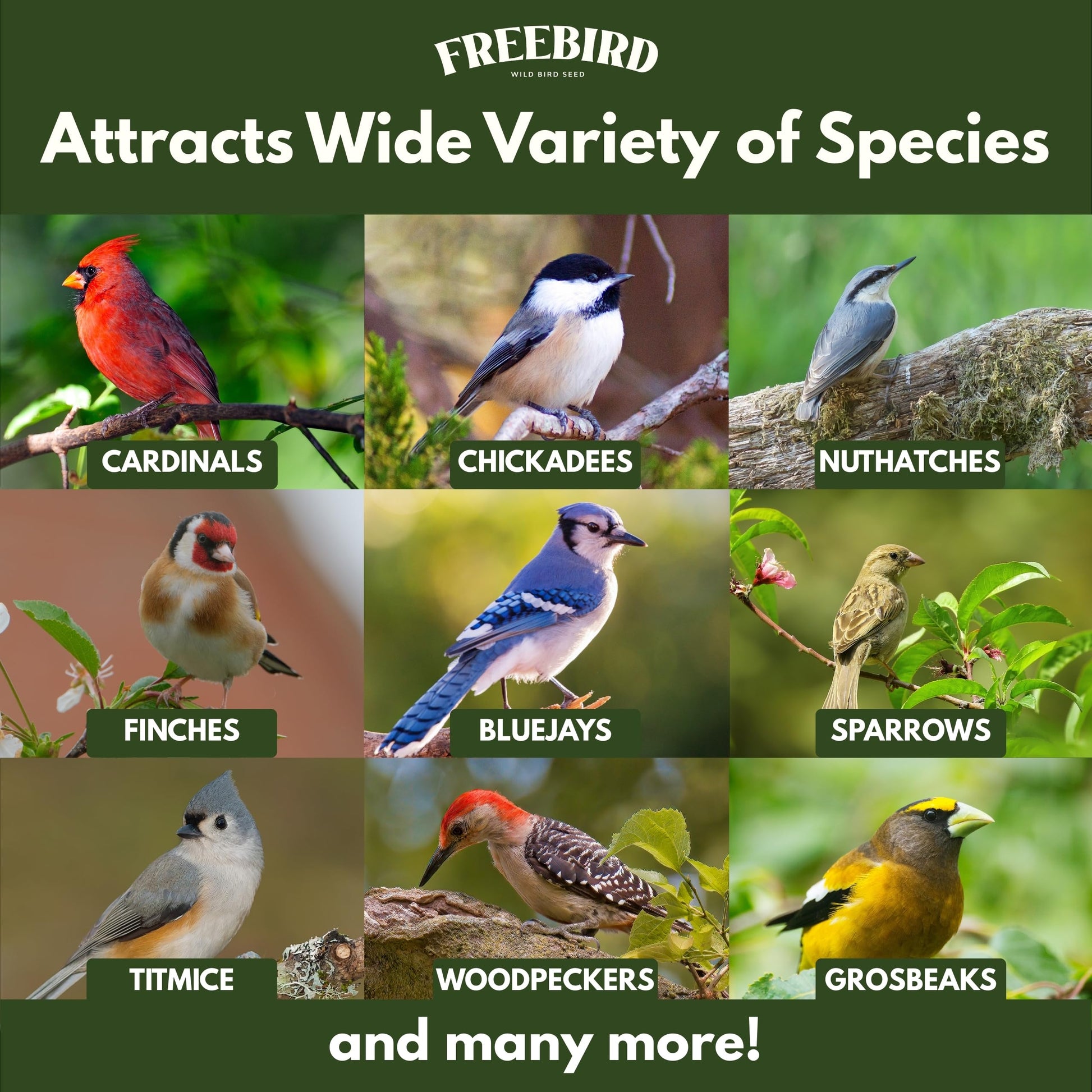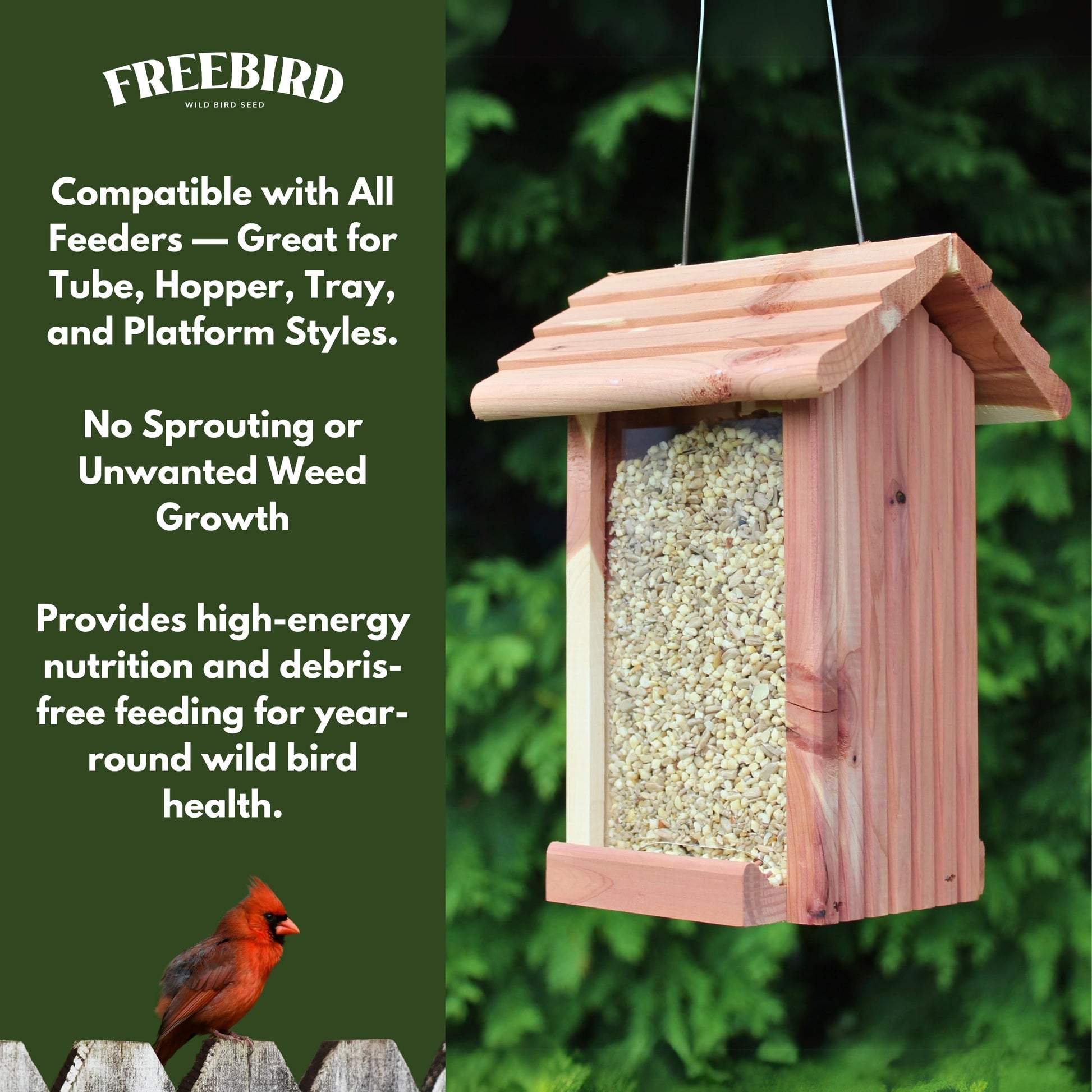 Premium No Mess Bird Seed by Freebird - Peanut Pieces, Sunflower Hearts, Sunflower Chips - 100% Waste Free Bird Food for Finches and Small Songbirds - 7lb Bag