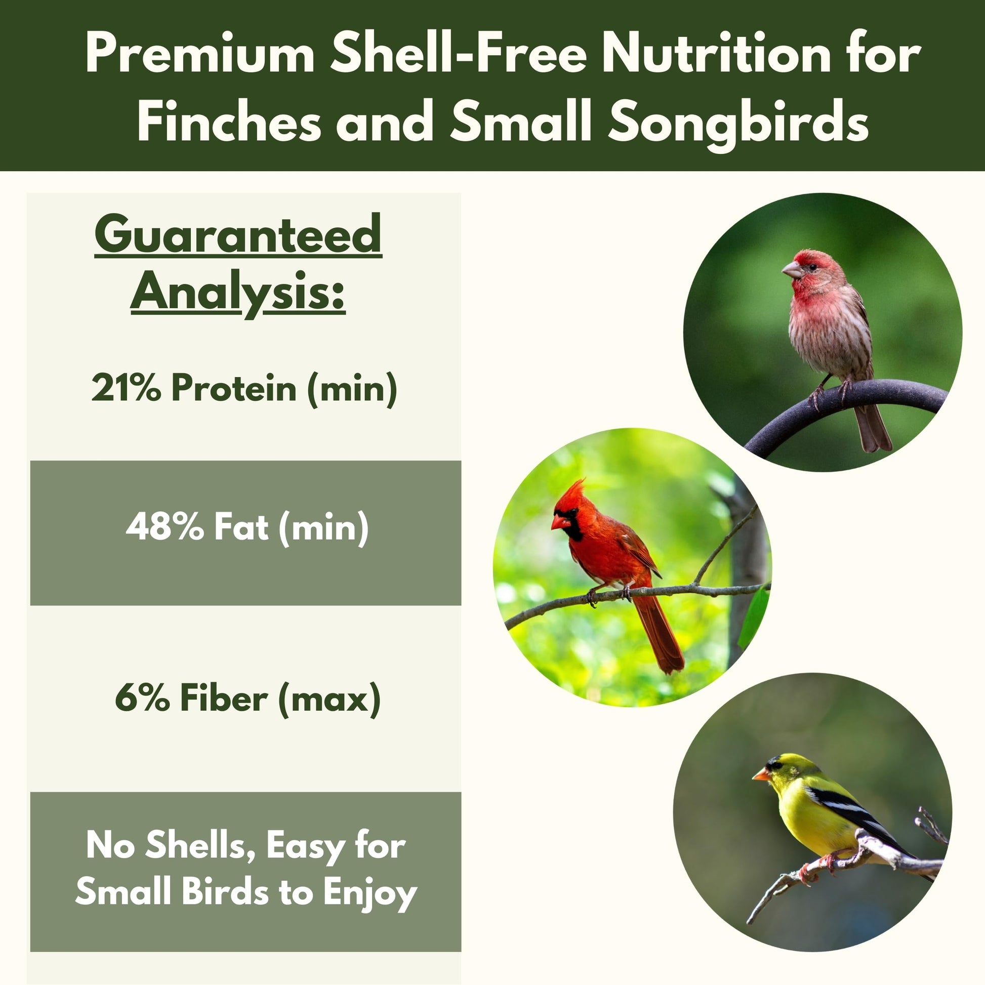 - Premium No Mess Bird Seed for Backyard Bliss – Our high-energy bird seed blend is designed to be a bird seed for outside feeders with no shells, no waste, and no cleanup. Packed with shelled peanuts, sunflower hearts, and sunflower chips, it's perfect for attracting beautiful songbirds while keeping your yard spotless. Ideal for mess-free feeding all year round.
