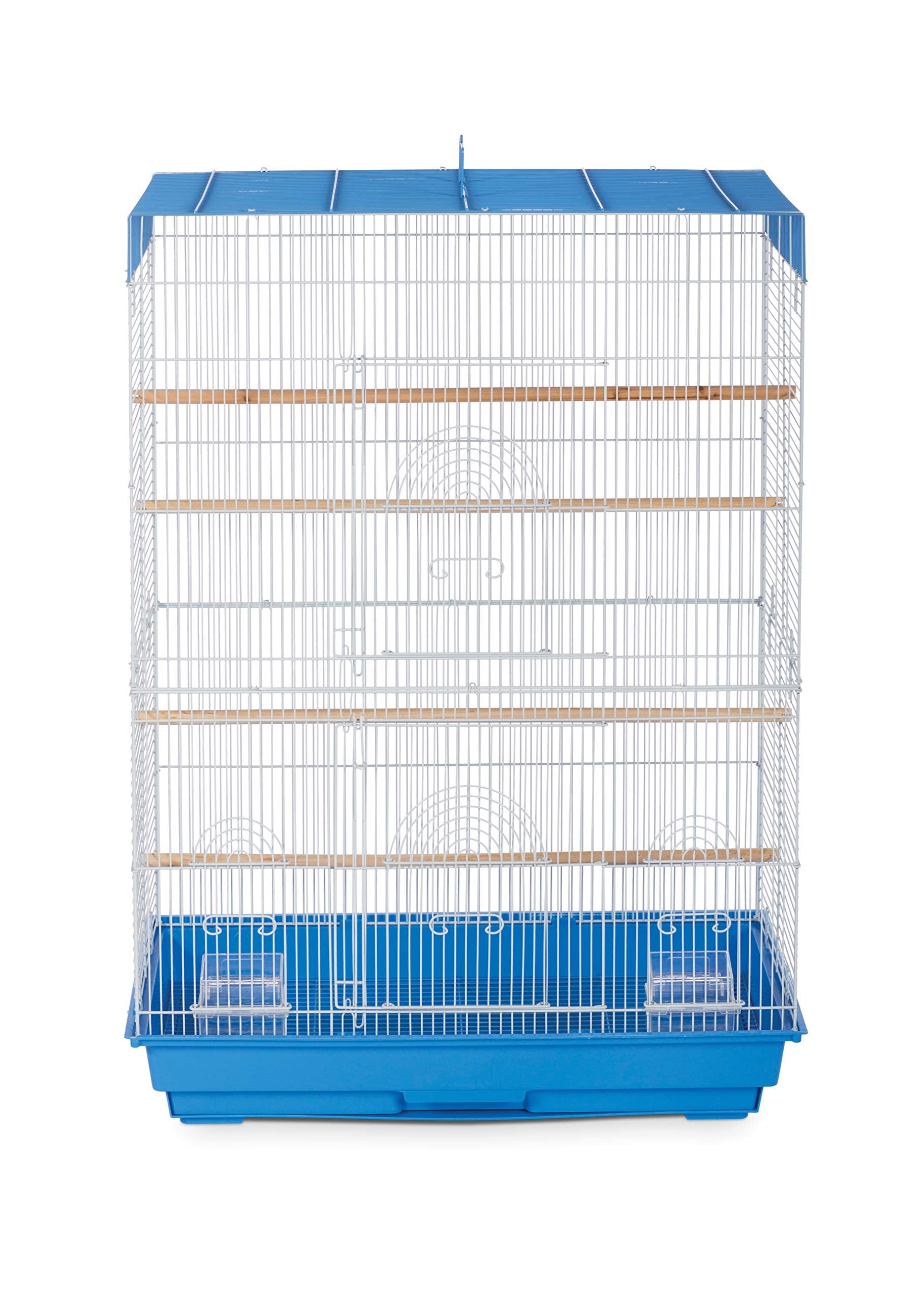 Details: Prevue Pet Products Flight Cage in Blue and White SP42614-3 is designed to house multiple parakeets, canaries or finch. Featuring two large front doors, our Flight Cage includes two hooded plastic cups plus four wood perches. Measuring 26-Inch L, 14-Inch W, 36-Inch H with 1/2-Inch wire spacing this Flight Cage provides plenty of room for your small birds to play.