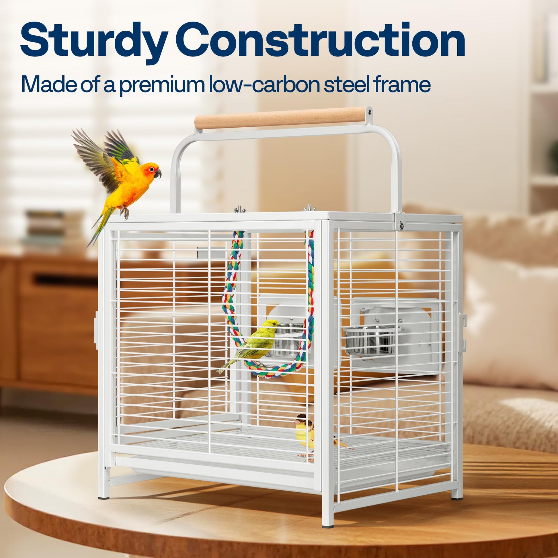 - STURDY CONSTRUCTION - Made of a premium low-carbon steel frame with a white coating that makes this bird cage sturdy, durable, even against playful birds; Guaranteed to resist wear and rust
