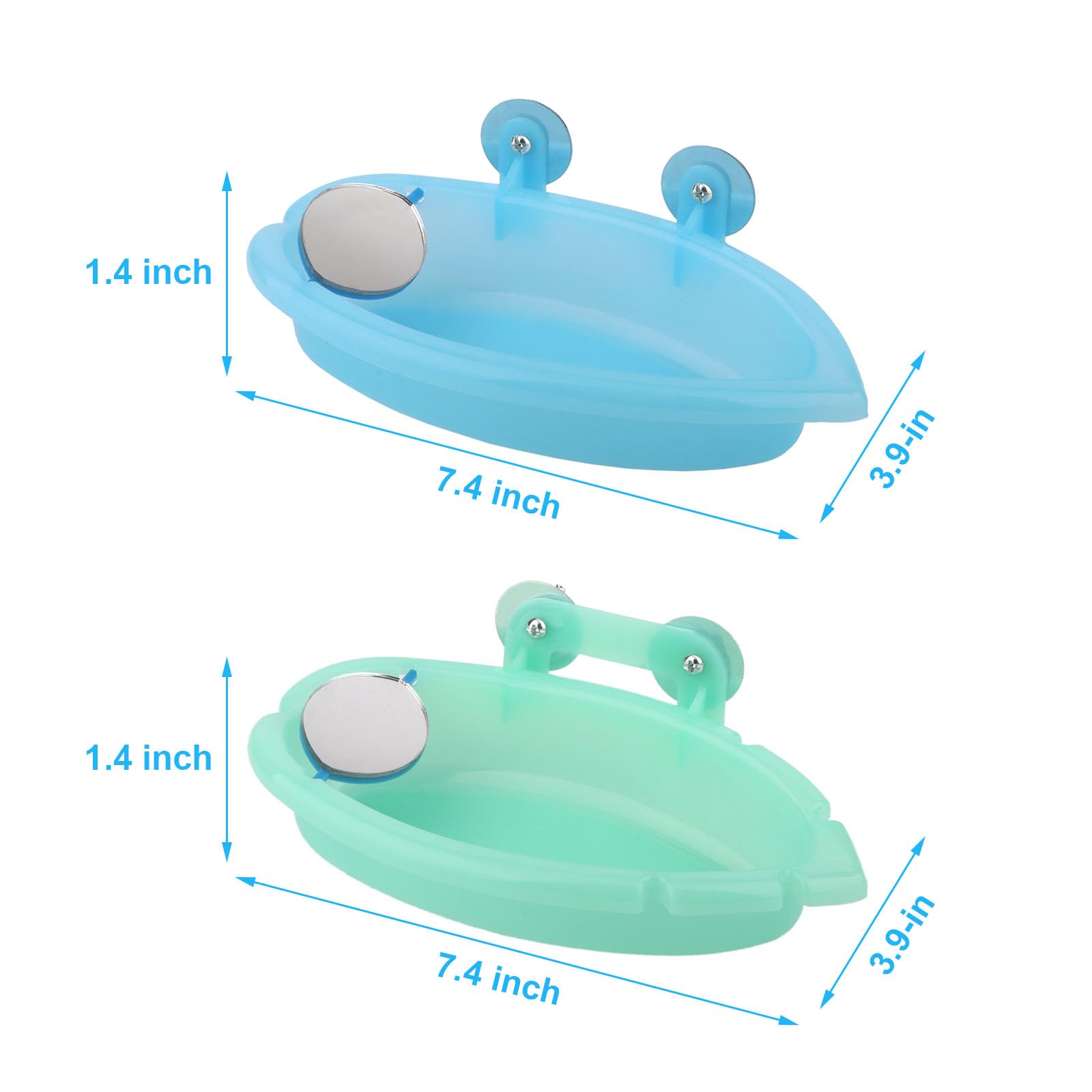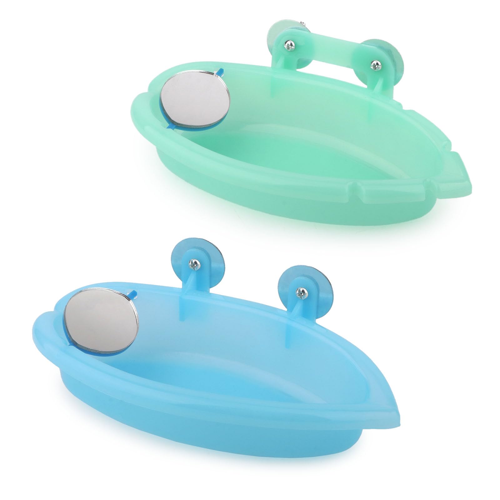 Wontee Bird Bath Box with Mirror Portable Parrot Hanging Bathroom Bathing Tub for Small Birds Cleaning Supplies (Blue(A)+Green)