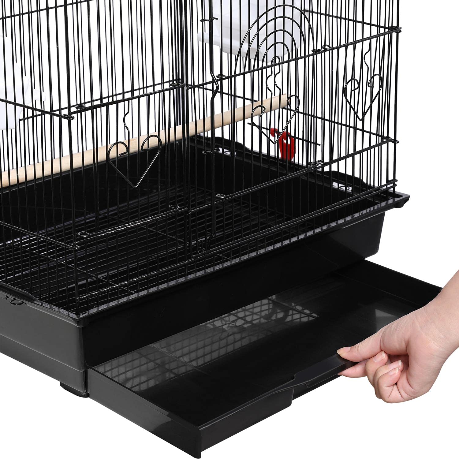 - Easy Cleaning: With the waterproof finished metal cage and the bottom slide-out tray, cleaning the cage would be a breeze for pet parents. The fence at the bottom prevents birds from walking in its excrement